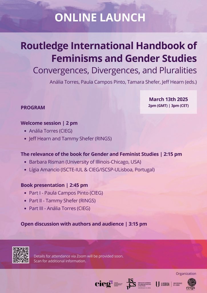 Pe 13 martie, Centrul Interdisciplinar pentru Studii de Gen (CIEG/ISCSP-ULisboa) și Asociația Internațională de Cercetare a Instituțiilor de Studii Avansate de Gen (RINGS) lansează online volumul